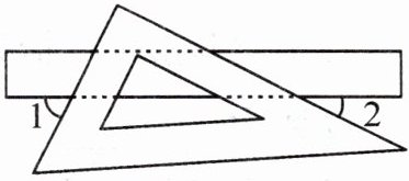 4. 如图,某同学将一块三角板叠放在直尺上,则 $ \angle 1 + \angle 2 = $(