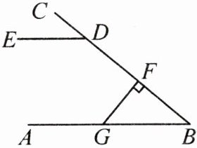 3. 如图,$ AB // DE $,$ FG \perp BC $ 于点 $ F $,$ \angle CDE = 40^{\circ} $,则 $ \angle FGB = $(