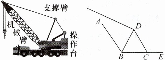 8. (2024·合肥50中西校期中)如图,起重机在工作时,起吊物体前机械臂AB与操作台BC的夹角∠ABC=120°,支撑臂BD为∠ABC的平分线.物体被吊起后,机械臂AB的位置不变,支撑臂BD绕点B旋转一定的角度并缩短,此时∠CBD=2∠ABD,∠BDC增大了10°,则∠DCE的变化情况为 (