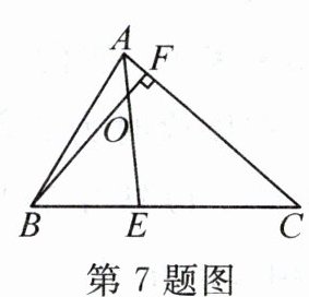 7. (2023·合肥38中期中)如图,在△ABC中,∠BCA=40°,∠ABC=60°.若BF是△ABC的高,与角平分线AE相交于点O,则∠EOF的度数为 (