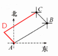 12. 如图,一只蚂蚁从点 $A$ 出发按北偏东 $60^{\circ}$ 的方向爬行 2.5 cm 到达点 $B$,再从点 $B$ 按西北方向爬行 1 cm 到达点 $C$,再从点 $C$ 按南偏西 $60^{\circ}$ 的方向爬行 2.5 cm 到达点 $D$,连接 $AD$.