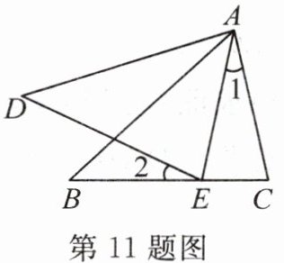 11. (2024·安庆期末)如图,已知在△ABC与△ADE中,点E在边BC上,AD=AB,AE=AC,DE=BC.若∠1=25°,则∠2的度数为