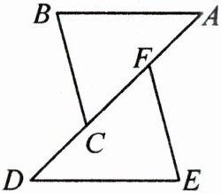 ∴CD + CF = AF+ CF,即DF = AC.在△ABC和△DEF中,$\begin{cases}\angle B = \angle E,\\\angle BCA = \angle EFD,\\AC = DF,\end{cases}$