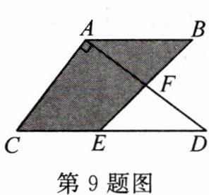 9. 如图,在△ACD 中,∠CAD=90°,AC=6,AD=8,AB//CD,E 是 CD 上一点,BE 交 AD 于点 F.若 AB=DE,则图中阴影部分的面积为