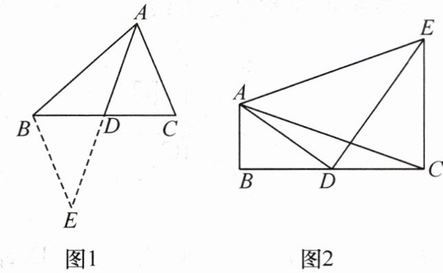 (3)如图2,在$\triangle ABC$中,$∠B=90^{\circ },AB=3$,AD是$\triangle ABC$的中线,$CE⊥BC,CE=6$,且$∠ADE=90^{\circ }$,求AE的长.