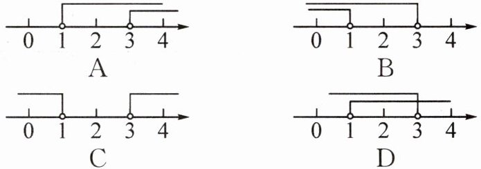 9. 已知点 $ P(m - 3,m - 1) $ 关于 $ y $ 轴对称的点在第一象限,则 $ m $ 的取值范围在数轴上表示正确的是( )