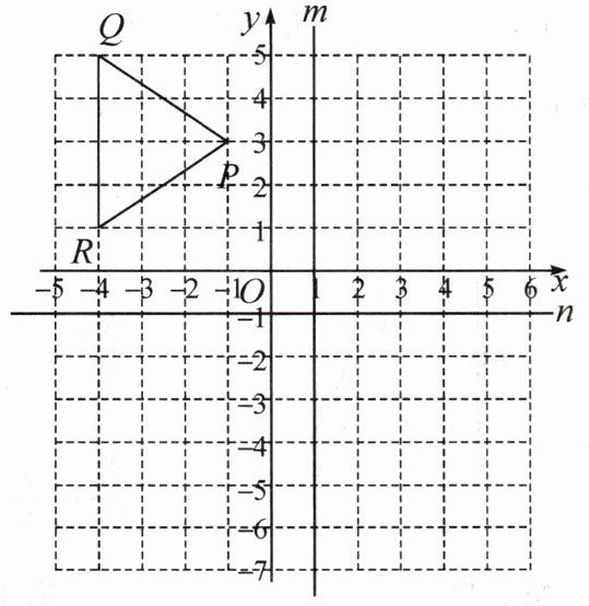 解:作图略.在平面直角坐标系中,△PQR各个点的坐标(x,y)与关于直线x=m对称所对应图形各个点的坐标(x',y')的关系为:x'=-x+2,y'=y;△PQR各个点的坐标(x,y)与关于直线y=n对称所对应图形各个点的坐标(x'',y'')的关系为:x''=x,y''=-y-2.