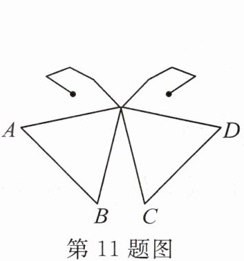 11. 如图,小明设计了一个“蝴蝶”的平面图案,整体为轴对称图形。将其放在平面直角坐标系中,点 $ A,B,D $ 的坐标依次为 $ (-4,4) $,$ (-1,1) $,$ (4,4) $,则点 $ C $ 的坐标为
