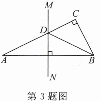 3. 如图,在△ABC中,∠C=90°,AC=16cm,AB的垂直平分线MN交AC于点D,连接BD.若CD:DB=3:5,则CD的长为(