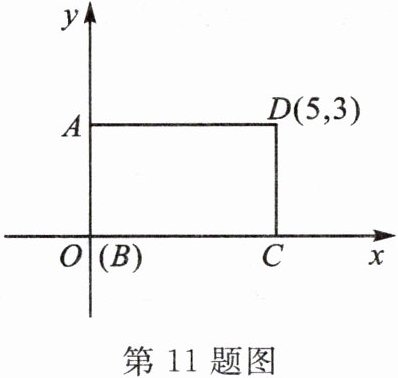 11. 已知长方形 $ ABCD $ 在平面直角坐标系中的位置如图所示,将长方形 $ ABCD $ 沿 $ x $ 轴向左平移到使点 $ C $ 与坐标原点重合后,再沿 $ y $ 轴向下平移到使点 $ D $ 与坐标原点重合,此时点 $ B $ 的坐标是