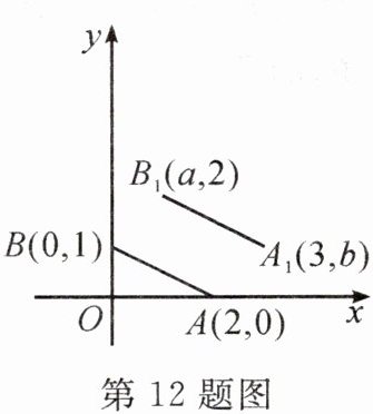 12. (教材 P18 习题 T3 变式)如图,点 $ A,B $ 的坐标分别为 $ (2,0),(0,1) $,点 $ A_1,B_1 $ 的坐标分别为 $ (3,b),(a,2) $.若将线段 $ AB $ 平移至 $ A_1B_1 $,则 $ a + b $ 的值为(