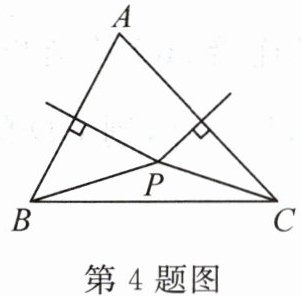 4. 如图所示,线段$AB$,$AC$的垂直平分线相交于点$P$,则$PB$与$PC$的关系是(