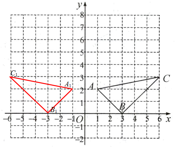 (1) 在图中画出 $\triangle ABC$ 关于 $y$ 轴对称的 $\triangle A_1B_1C_1$;