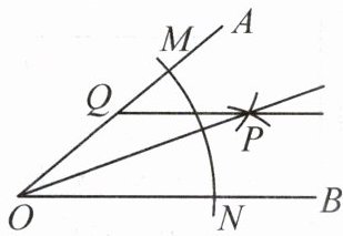 5. 如图,已知$\angle AOB = 40^{\circ}$,以点$O$为圆心,以适当长度为半径画弧,分别交$OA$,$OB$于点$M$,$N$,再分别以点$M$,$N$为圆心,大于$\frac{1}{2}MN$的长为半径画弧,两弧交于点$P$,作射线$OP$,过点$P$作$PQ// OB$交$OA$于点$Q$,则$\angle OPQ$的度数是