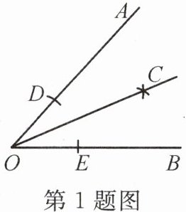 1. 以点O为圆心,任意长为半径画弧,分别交OA于点D,交OB于点E;