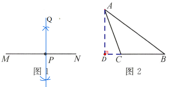 (1)如图1,画出直线$MN$的垂线$PQ$。