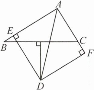 8. 北师大附属实验校本经典题 如图,$DE\perp AB$交$AB$的延长线于点$E$,$DF\perp AC$于点$F$。若$BD = CD$,$BE = CF$。