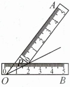 5. 小明同学在学习了全等三角形的相关知识后发现,只用两把完全相同的长方形直尺就可以作出一个角的平分线。如图,一把直尺压住射线$OB$,另一把直尺压住射线$OA$并且与第一把直尺交于点$P$,小明说:“射线$OP$就是$\angle BOA$的平分线。”他这样做的依据是