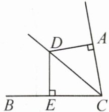 1. 如图,$DA\perp AC$,$DE\perp BC$。若$AD = 5\mathrm{cm}$,$DE = 5\mathrm{cm}$,$\angle ACE = 80^{\circ}$,则$\angle DCE =$(