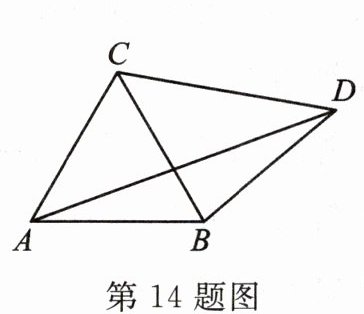 14. 如图,$\triangle ABC$ 是等边三角形,$BC = BD$,$\angle BAD = 20^{\circ}$,则 $\angle BCD$ 的度数为