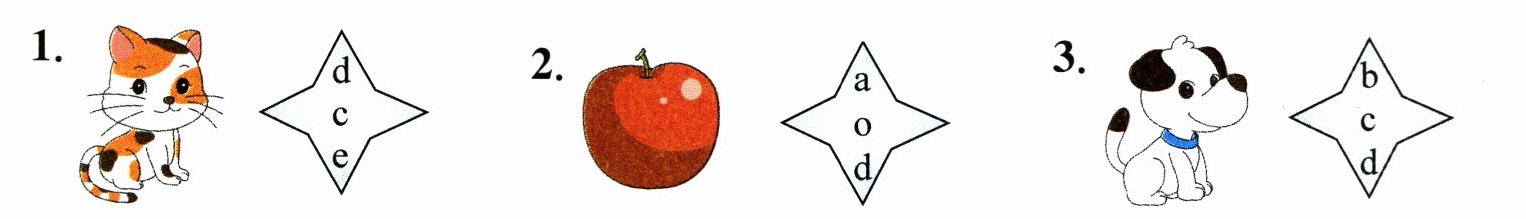 二、根据图片,圈出图片对应单词中所含字母,并写出其大小写形式。