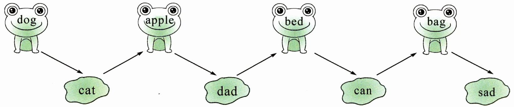 四、按照箭头所指方向拼读单词,并将含有相同字母发音的单词进行分类。