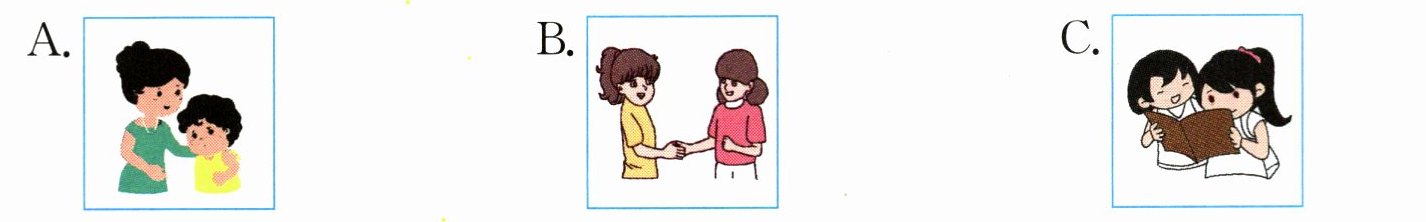 )3. 你的朋友帮助了你,你会对他/她说:______A. Thank you!