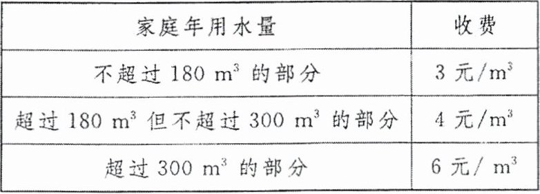 8. $\because 180×3 = 540$(元),$180×3+(300 - 180)×4 = 1020$(元),$540 < 960 < 1020$,$\therefore$小亮家去年用水量超过$180m^3$但不超过$300m^3$.设小亮家去年实际用水量是$x m^3$.根据题意,得$180×3 + 4(x - 180)=960$,解得$x = 285$.答:小亮家去年实际用水量是$285m^3$.