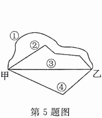 5. 如图,甲、乙两地间有曲线、折线、线段等 4 条路线,则其中路线