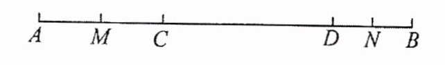 【例 2】如图,$C$,$D$ 为线段 $AB$ 上的两点,$M$,$N$ 分别是线段 $AC$,$BD$ 的中点。