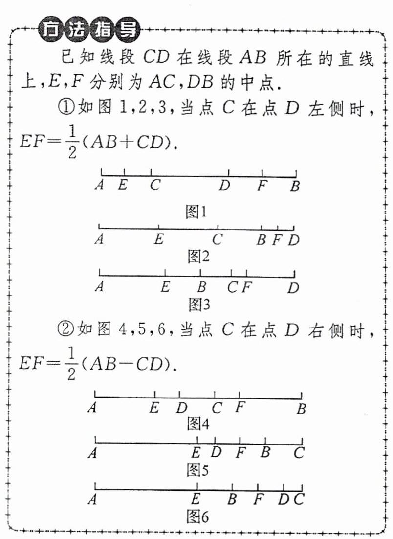(2)如图 2,若 $AC=\frac{1}{3}AD = a$,$BD = b$,$F$ 是线段 $CD$ 的中点,用含 $a$,$b$ 的代数式表示线段 $EF$ 的长。