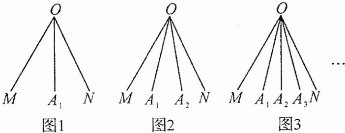 个角。(3)如图 3,∠MON 内部有三条射线 $OA_1$,$OA_2$,$OA_3$,则图中共有