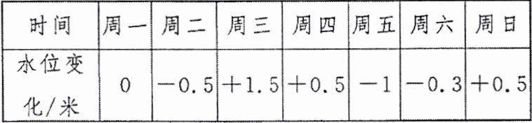 (2)周一的水位是30+0=30(米),周二的水位是30+(-0.5)=29.5(米),周三的水位是29.5+1.5=31(米),周四的水位是31+0.5=31.5(米),周五的水位是31.5+(-1)=30.5(米),周六的水位是30.5+(-0.3)=30.2(米),周日的水位是30.2+0.5=30.7(米),