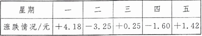 解:+4.18-3.25+0.25-1.60+1.42=1(元). 答:这只股票星期五的价格与上星期五相比,上涨了1元.
