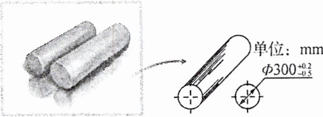 如图,在机械零件图纸上通常用$\Phi 300_{-0.5}^{+0.2}$来表示轴的尺寸加工要求,这里 300 表示直径是 300 mm,$-0.5$和$+0.2$是指直径在$(300 - 0.5)mm$和$(300 + 0.2)mm$之间的产品都属于合格产品.