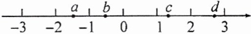 9. 有理数 $ a,b,c,d $ 在数轴上的对应点的位置如图所示,则 $ abc $