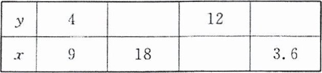 8. 已知下表中的 $x$ 和 $y$ 两个量成反比例关系,请把表格填写完整: