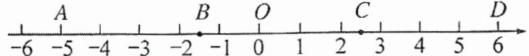 11. 如图,数轴上的点 $ A,B,O,C,D $ 分别表示数 $-5$,$-1\frac{1}{2}$,$0$,$2.5$,$6$。