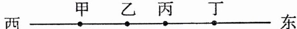 14. A 南京师大附中校本经典题 如图,在一条笔直的东西走向的公路上有四个村庄.已知甲村庄在乙村庄的西边$(a+b)$千米处,丙村庄在乙村庄的东边$(2a+b)$千米处,丁村庄在乙村庄的东边$(3a+2b)$千米处.