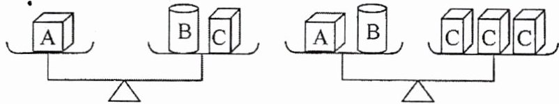 10. 如图,天平两边盘中标有相同字母的物体的质量相同. 若两架天平保持平衡,$1$ 个砝码 $A$ 与 $n$ 个砝码 $C$ 的质量相等,则 $n$ 的值为(