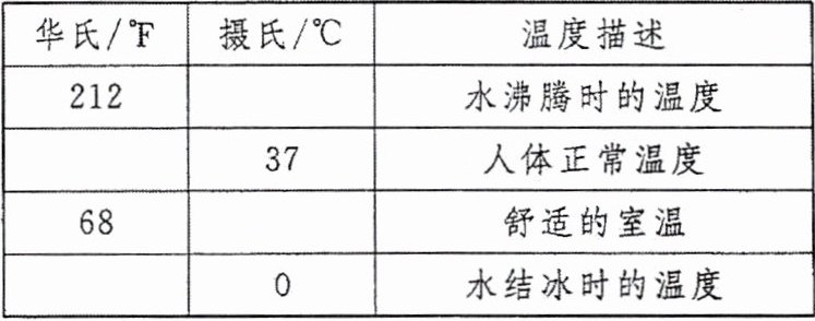 12. 杭州外国语校本经典题 有的温度计有华氏、摄氏两种温标,华氏 $F(^{\circ}F)$、摄氏 $C(^{\circ}C)$ 的转换公式是 $F = 1.8C + 32$. 请填写下表.