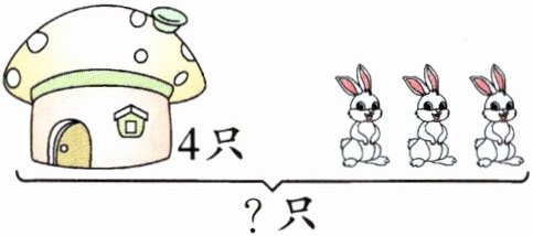 $4 - 3 = 1$(只)$□$ $3 + 4 = 7$(只)$□$