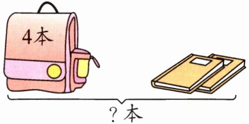 书包里有$□$本书,书包外面有$□$本书,一共有几本书?