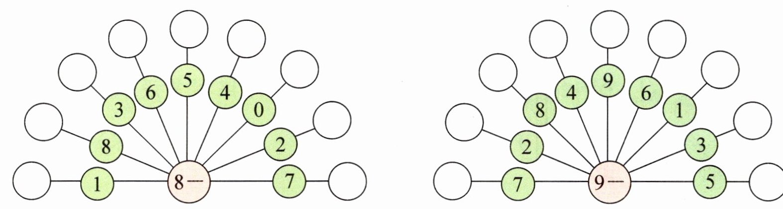 左图白色圈从左到右、从上到下依次为7,0,5,2,3,4,8,6,1;右图白色圈从左到右、从上到下依次为2,7,1,5,0,3,8,6,4