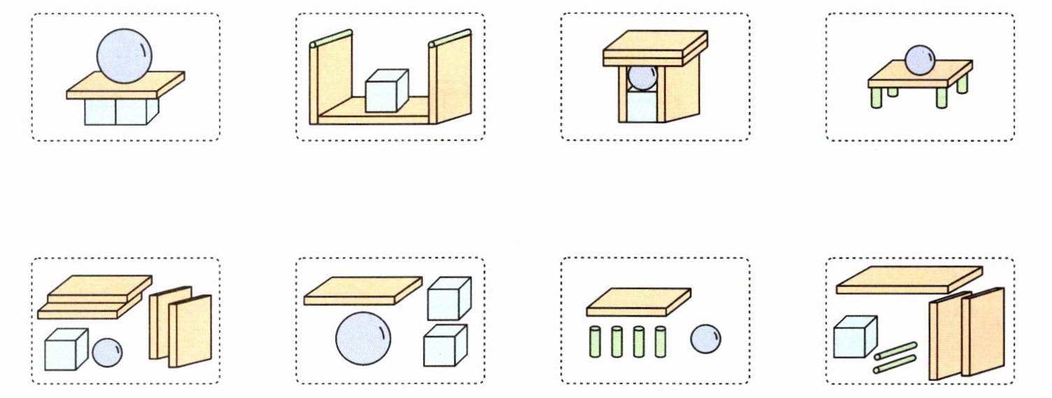 1. 一、在搭得最稳的图形下面的( )里画“√”。