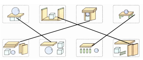 3. 三、下面的图形是由哪些材料拼搭而成的?连一连。