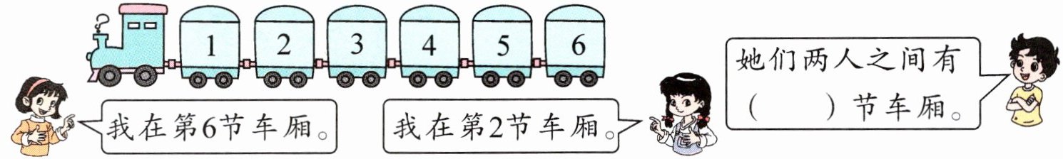 1. 先圈出她们所在的车厢,再填一填。