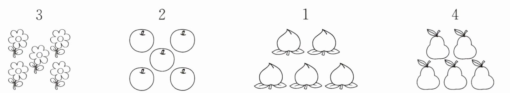 第四个数字是4,给4个梨涂色。