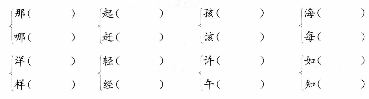 (示例)那时 哪里 一起 赶快 孩子 应该 大海 每天 海洋 样子 轻轻 已经 许多 中午 如果 知识