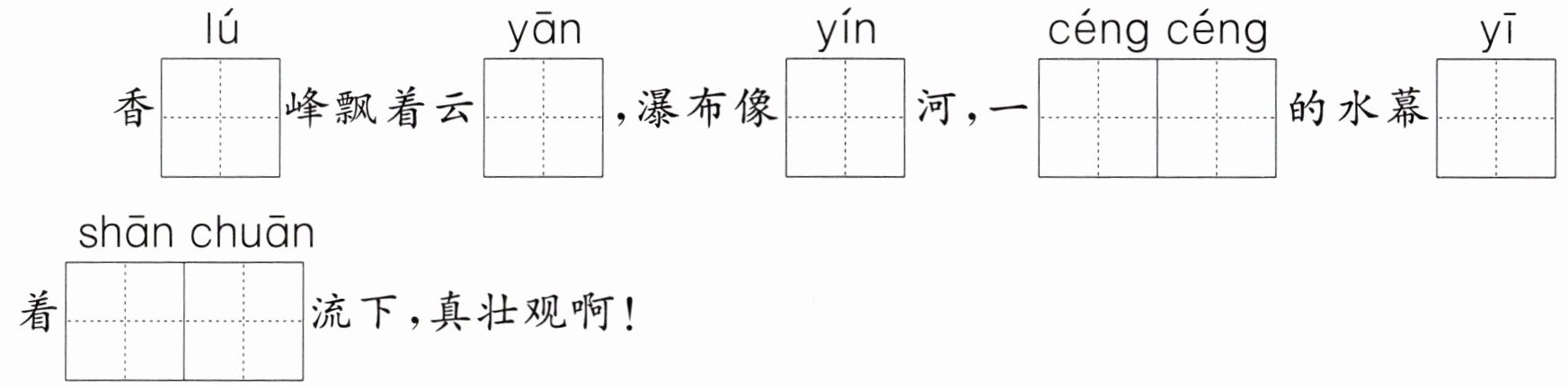 瀑布(pò pù√) 香炉(lú√ nú) 食欲(yù√ yǜ) (依√ 衣)靠 穷(尽√ 层) (摇 遥√)